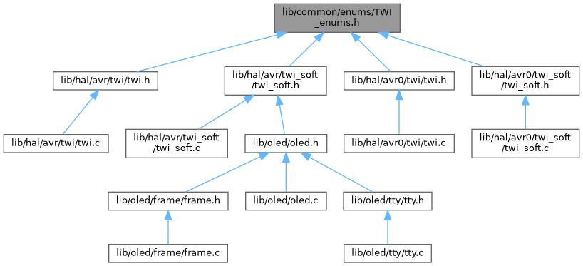 This header file defines the enums used to represent various states and configurations related to software TWI (Two-Wire Interface, I2C) communication. It includes enumerations for device operation modes (master/slave), communication operation types (read/write), acknowledgment status (ACK/NACK), and error codes for handling communication results.
