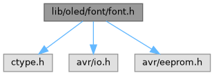 This file defines macros for font dimensions, ASCII character range, and configuration options such as storing fonts in EEPROM or ignoring lower case characters. It provides the prototype for font_getchararray, a function that returns the bitmap data of a given ASCII character. The font data supports rendering text on graphical displays like OLED by converting characters into pixel patterns. Configuration macros allow customization of font size and storage.