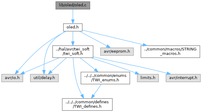 Communication with the OLED is abstracted through macros that select software or hardware TWI implementations based on compile-time configuration.