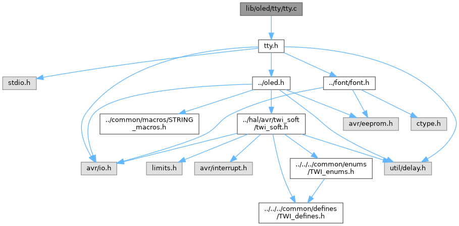 This file contains the implementation of functions for text rendering on a graphical OLED display. It supports cursor positioning, character and string output, line clearing, and optional printf-style formatted output. The interface handles autoscrolling and dynamic character spacing for improved readability. The TTY layer relies on the OLED display driver and font data modules. It abstracts text rendering as characters drawn via pixel data segments using the configured font, respecting display size and constraints. Compile-time options toggle support for autoscroll, dynamic text spacing, and printf functionality.