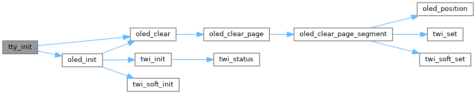 This function initializes internal state variables for cursor position and scrolling, resets dynamic text spacing if enabled, and initializes the underlying OLED display. It clears the OLED screen to prepare for new text output. If printf support is enabled, it also configures the standard output stream stdout to use the TTY's printf handler function, allowing formatted output via standard C library functions.