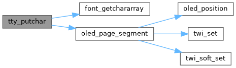 This function iterates through each character of the input string until it encounters the string terminator (‘’\0'). Each character is passed to tty_putchar` for rendering on the OLED display, thereby displaying the entire string sequentially.