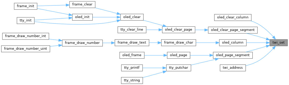 This inline function constructs the address byte by shifting the 7-bit slave address left by one and combining it with the least significant bit representing the operation (read/write). It then calls twi_set to transmit this address byte over the TWI bus and returns the transmission status.