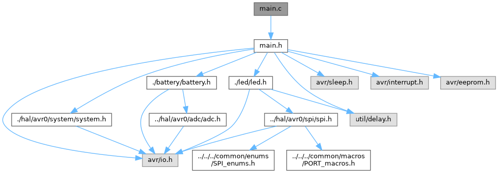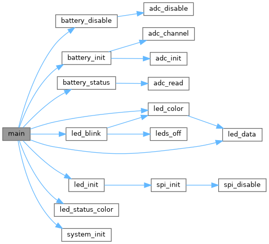 This source file implements the main control flow and event handling for the RCC embedded system. It manages system initialization, LEDs and battery management, interrupt handling, EEPROM operations, and execution of user commands triggered by button inputs. Key functionalities include timed LED blinking, system-wide power management including shutdown and restart logic, and processing of button press events for dynamic LED control.